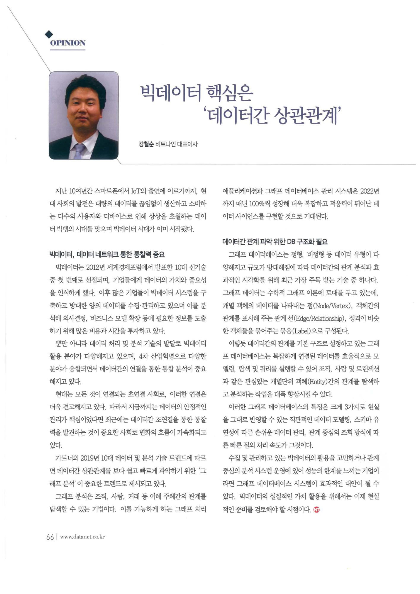 [Network Times] 2019년 4월호 Opinion 기고, 「빅데이터 핵심은 ‘데이터간 상관관계’」
