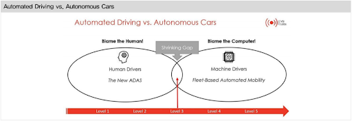 비록 자율주행차 기술은 시험 단계로는 2와 3단계 사이까지는 발달했으나, 이를 상용화하기에는 아직 이릅니다.