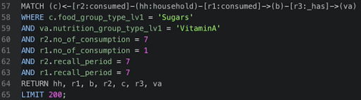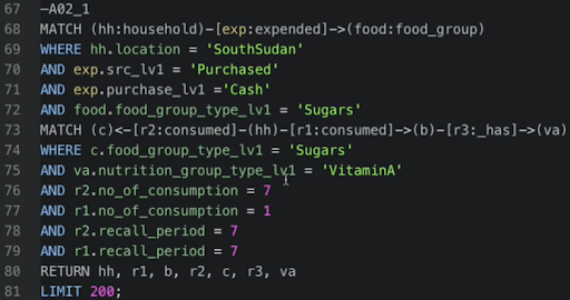 지금부터는 수집한 데이터를 활용해 어려움에 처한 지역과 그 사람들을 찾아낸 사례에 대해 소개하고자 한다. 먼저 분석가들은 식품 소비 및 지출 데이터, 다양한 식품 그룹과 측정 단위, 통화 및 여러 식품 공급원(예: 식품을 시장에서 구매했는지, 집에서 재배했는지, 정부가 제공했는지 등에 대한 여부)에 대한 자료를 수집한 후 데이터를 통합했다. 이 엄청난 양의 데이터를 관리하고 분석하기 위한 방법을 찾던 중 그래프 데이터베이스(DB)에서 해결책을 찾을 수 있었다. 비트나인의 아젠스그래프(Agensgraph)를 사용해 변수 간의 관계를 기록해 데이터를 구성했고, 복잡한 데이터셋의 정보를 쉽게 이해할 수 있게 되었다. 이 업무를 담당한 데이터분석가 Singhal은 “비트나인의 아젠스그래프를 통해 여러차원으로 분리된 데이터를 쉽게 집계하고, 통합할 수 있었다” 고 언급하기도 했다.