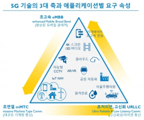 5G는 4차 산업혁명 시대로 소개된 광범위한 영역에 변화를 이룰 것이다. 5G의 이동통신 특성은 크게 세 가지로 나뉜다.