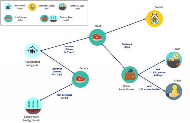 WFP의 데이터 분석가들은 아젠스그래프를 통해 영양 불균형이 심각한 가정과, 그들의 음식 소비 패턴을 분석했다. 분석한 결과를 바탕으로 필요한 난민들에게 영양 교육 프로그램을 계획할 수 있었고, WFP의 지원금이 올바른 영양 섭취에 쓰이지 않은 경우를 파악하여 그에 맞는 새로운 솔루션을 내놓았다.