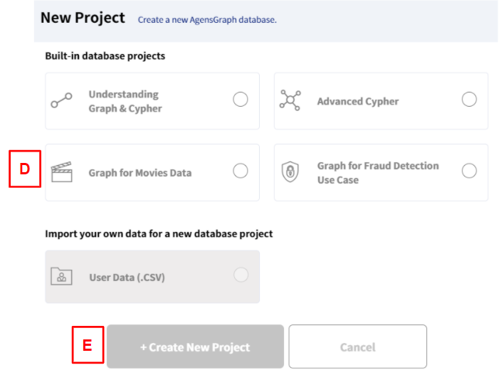 E) Create New Project 버튼을 눌러 데이터셋을 활성화합니다.