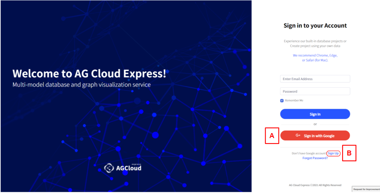혹시 AG Cloud Express를 이용하시다가 문제가 발생하거나, 개선사항이 필요하거나, 버그를 찾으시면, AG Viewer 창이 아닌, AG Cloud Express 창 우측 하단에 있는 Request for Improvement를 클릭하여 문의 부탁드립니다.