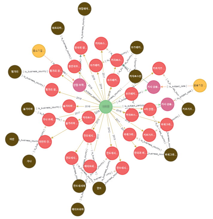 기존에는 전문가의 정보를 찾아보려면 수많은 문서들을 조회하는 불편함이 있었지만, 모든 데이터의 관계를 연결하는 그래프 DB 덕분에 정보 조회가 간편해졌다. 특정 전문가의 기존 사업의 참여 정보를 조회하기 위해 전문가 중심의 검색을 실행한 결과, 전문가가 기존에 참여하였던 사업과 그 사업이 어느 국가에서 수행되었는지 등의 정보를 한눈에 볼 수 있고, 주로 참여해왔던 사업들의 공통 주제 등을 파악하여 그 전문가의 전문분야를 확인한다.