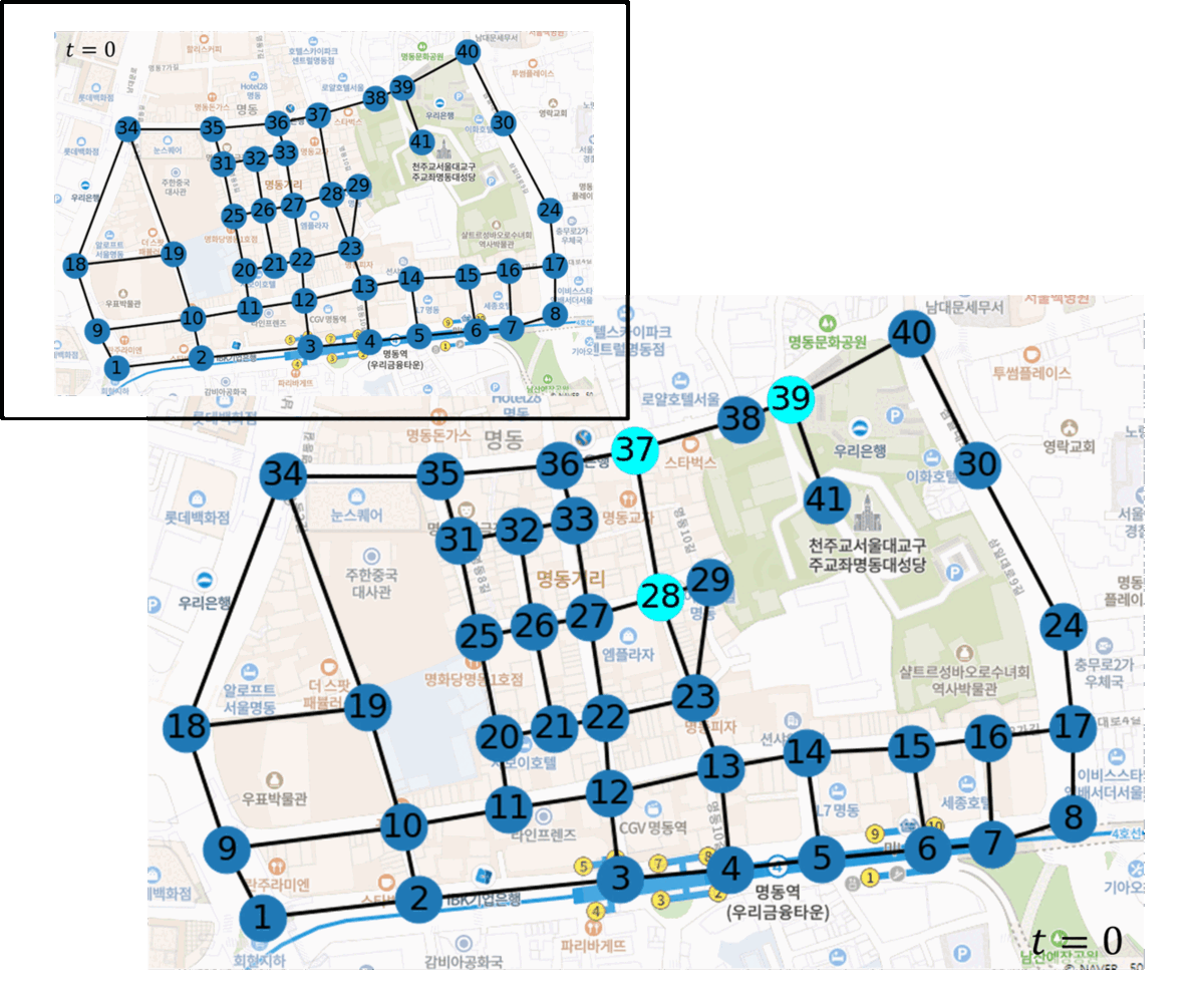 명동 지역에서의 그래프 시뮬레이션