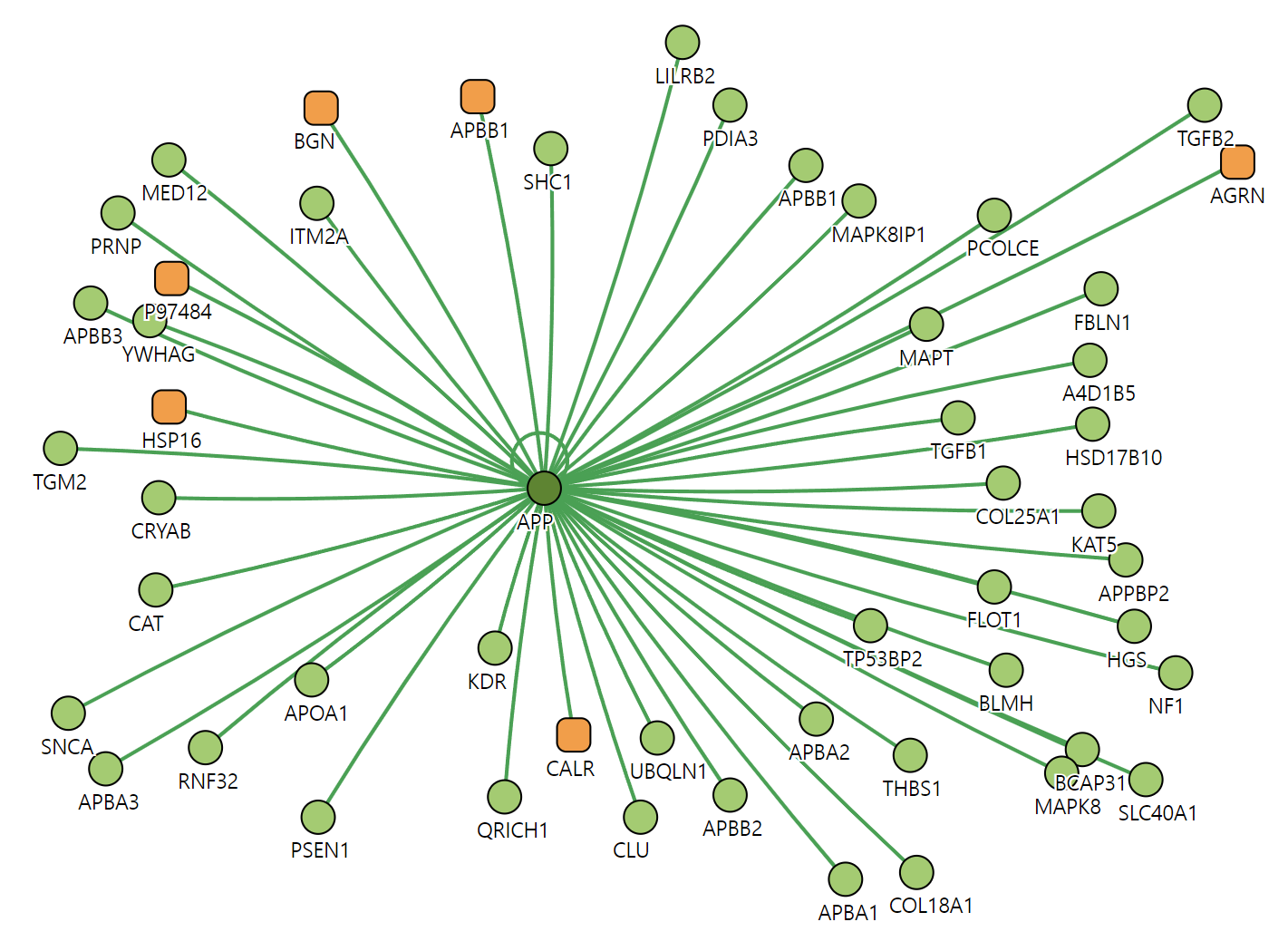 [그림 4] 그림 3의 데이터로 구현한 Graph 데이터 (APP라는 단백질의 관계만 추출)