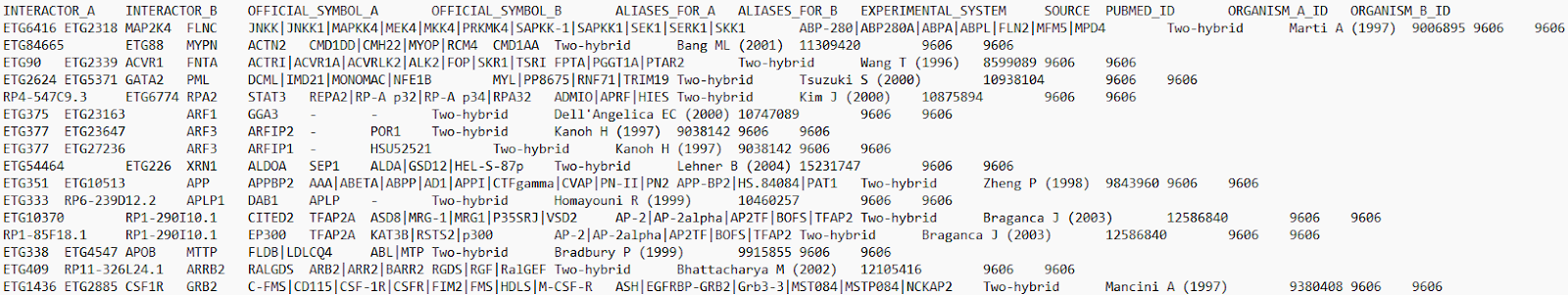 [그림 3] BioGrid 에서 제공하는 인간의 단백질 관계 데이터