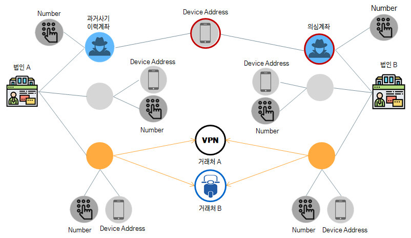 이기종 그래프 모델링을 통해 얻은 관계를 단일 그래프로 변환하는 방법인 '그래프 투영'은 새로운 관계들을 도출하는데 활용됩니다. 예를 들어, 휴대폰 번호나 거래처와 같은 이기종 데이터를 그래프에 연결함으로써, 이기종 관계를 갖는 데이터들을 단일 그래프로 변환할 수 있습니다. 이를 기반으로 새로운 관계를 파악하고, 더 정교한 분석을 시도할 수 있습니다.