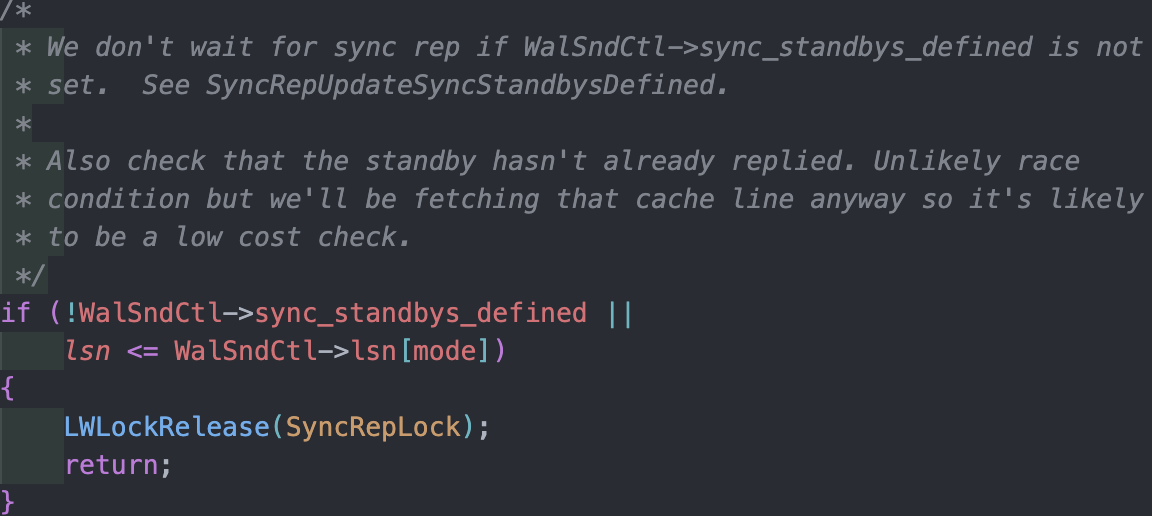 - receiver는 새로운 WAL 데이터가 오기까지 무한루프 내에서 기다립니다.