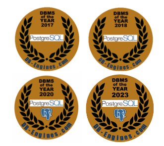 뿐만 아니라 포스트그레SQL은 2023년을 포함하여 최근 7년 중 4번이나 ‘올해의 DBMS 상’(DBMS of the YEAR)을 수상하였습니다. 2020년 포스트그레SQL의 수상 이후, 2021년과 2022년은 스노우플레이크가 잠깐 돌풍을 일으켰지만, 결국 포스트그레SQL이 왕좌를 재탈환했습니다. 이 상은 DB-Engines에서 한 해 동안 가장 많은 인지도를 얻은 데이터베이스에 수여되는 상입니다. 이러한 성과는 포스트그레SQL 특유의 활발한 커뮤니티 활동과 전 세계 개발자들의 코드 기여 덕분입니다. 그 선순환으로 포스트그레SQL은 시장에서 가장 신뢰받고 있는 데이터베이스로 인정받고 있습니다.