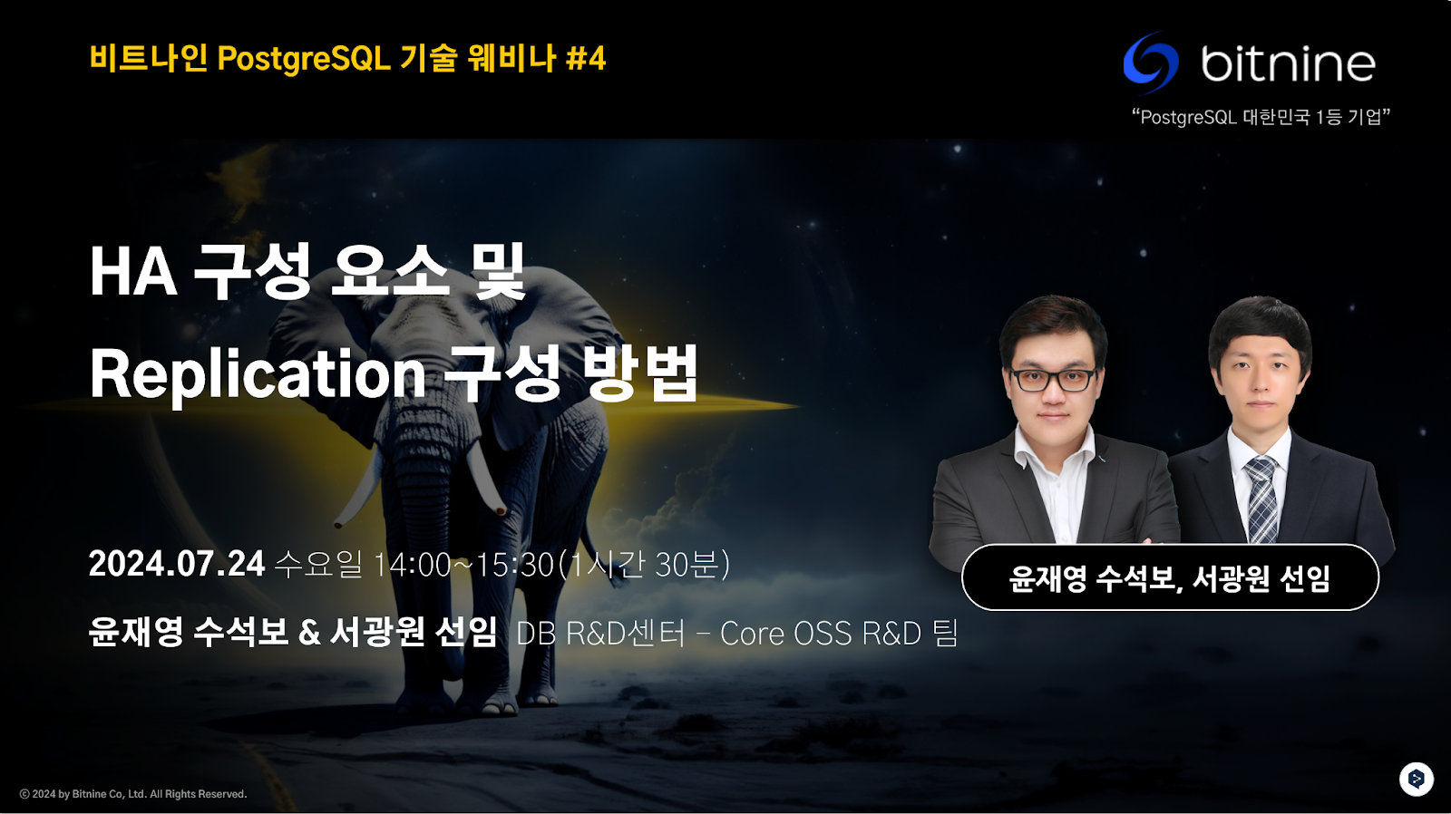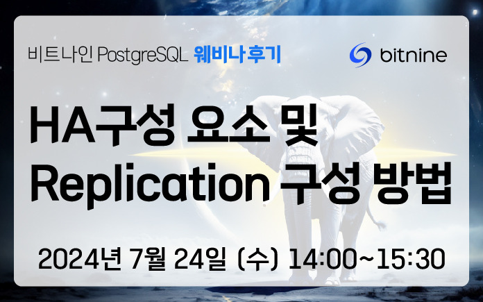 | 🗓️9/4(수) 오후 2시, 6회차 "비트나인 PostgreSQL 기술 웨비나"에 초대합니다. (0) | 2024.08.14 |