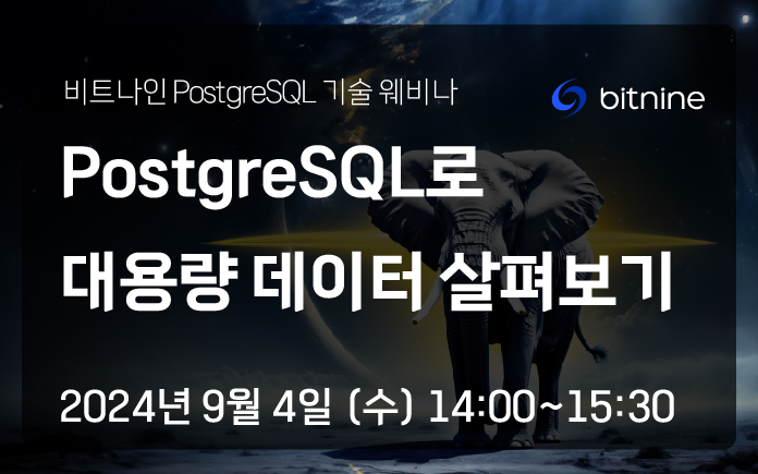 🗓️9/4(수) 오후 2시, 6회차 "비트나인 PostgreSQL 기술 웨비나"에 초대합니다.